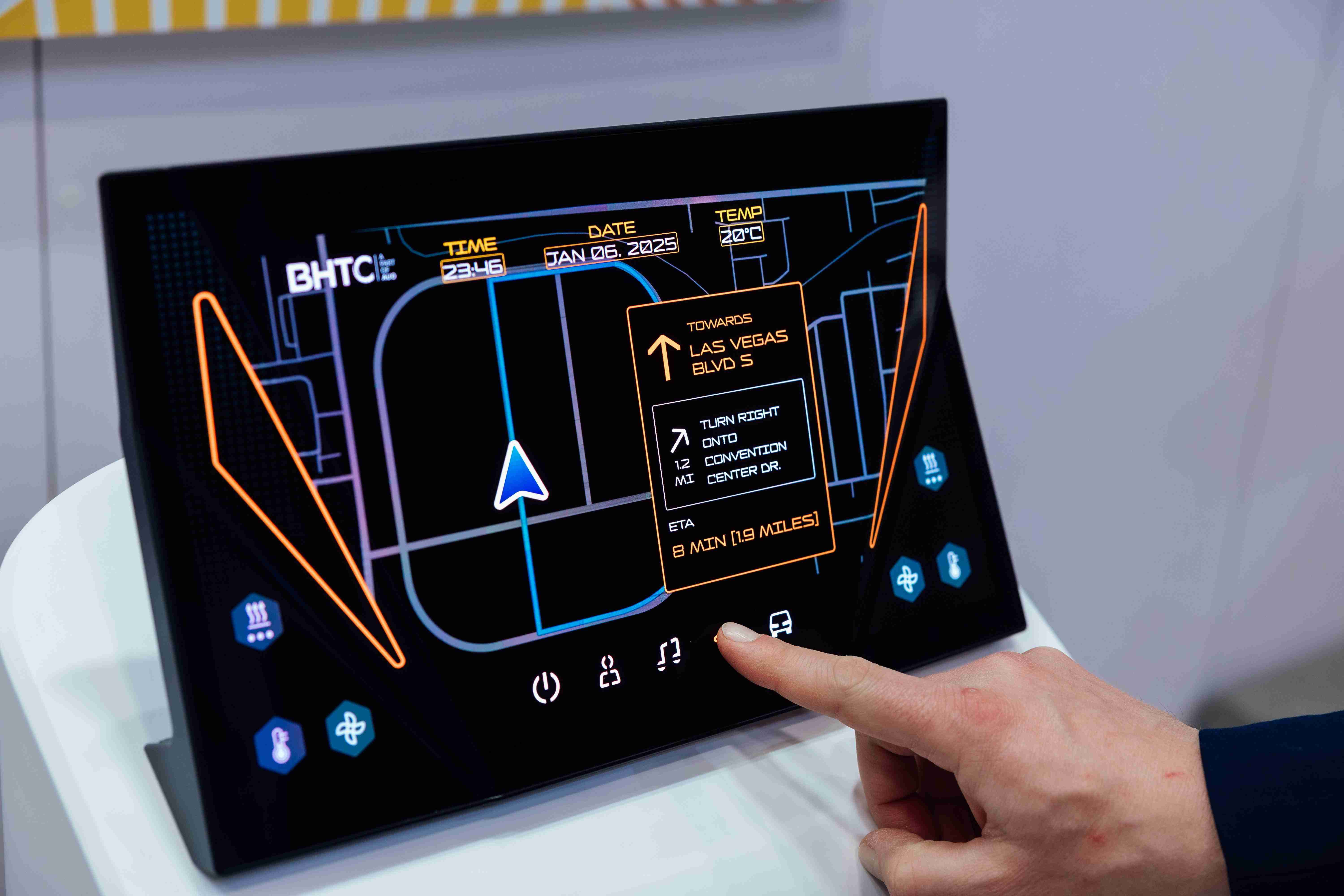 Micro LED可折迭触控显示器(Haptifold Display)结合BHTC多年HMI设计经验,,整合中控台和温度控制功能,,以优美的曲面和独特的外型助力车内设计美学,,,,在辅以触控回馈下,,为驾驶带来更直觉的使用体验。。