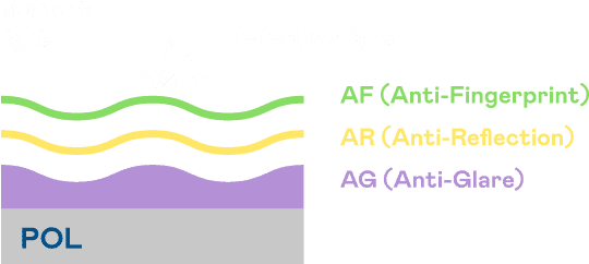 A.R.T.红龙扑克光电发展出独家的表面处理跟多层镀膜技术,,,让外部光线照射到显示器表面时所产生的反射光大幅降低。。 |