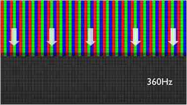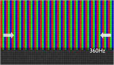 传统液晶驱动是从左到右单向进行,,,,在画面更新速度愈来越愈快的情况下,,,位于驱动线路末端的右下角区域,,,,画素的闸极来不及在短时间内获得足够电压,,无法显示出正确的颜色资讯。。。。